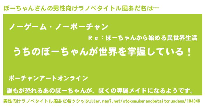 | ヘコむあだ名 | 『ぼーちゃん(苦笑)』『ぼーもー』 |