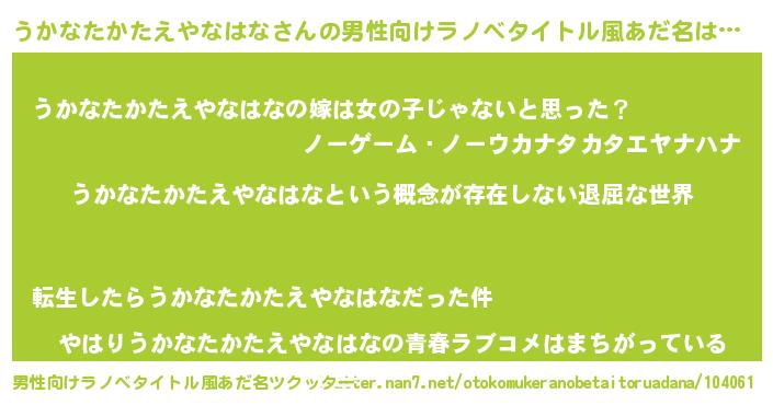 | 女子向けラノベタイトル風あだ名 | 『うかなたかたえやなはなの契約王妃』 |