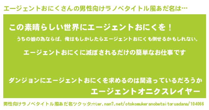 | 胡散臭い通販商品みたいなあだ名 | 『世界中を虜にした100年もののヴィンテージワイン…その名も「エージェントおにく」』 |