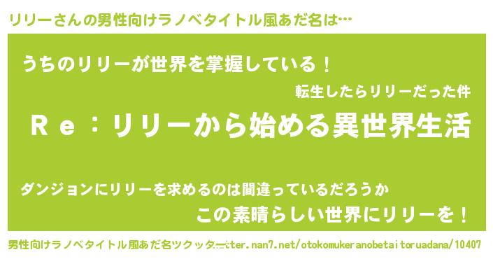 | ヒーロー風カッコイイあだ名 | 『最強戦士リリー』『仮面リリダー』 |