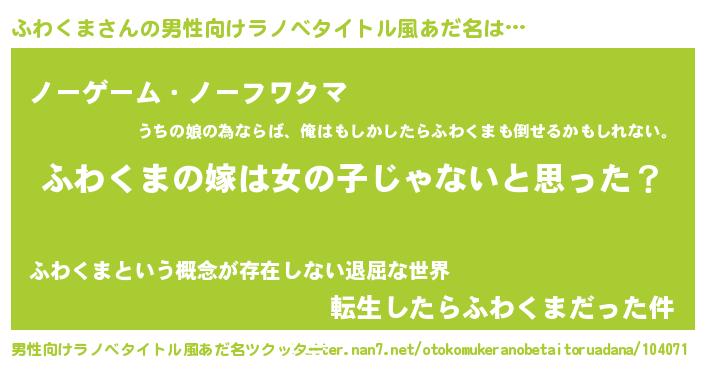 | 意味不明あだ名 | 『とにかく怪しいふわくま』 |