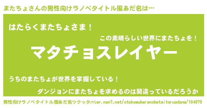 | 意味不明あだ名 | 『めかぶ科またちょ属』 |