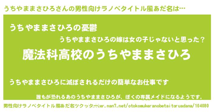 | 女子向けラノベタイトル風あだ名 | 『うちやままさひろなんてお断りですっ。』 |