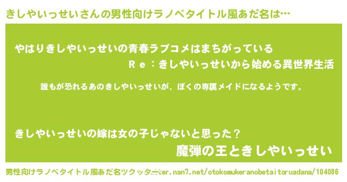 | 女子向けラノベタイトル風あだ名 | 『異世界でカフェきしやいっせいを開店しました。』 |