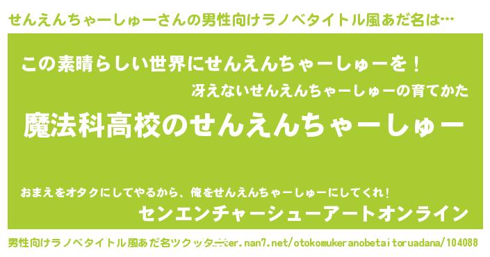 | 意味不明あだ名 | 『自称せんえんちゃーしゅー』 |
