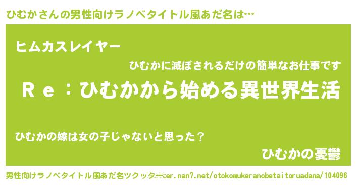 | 意味不明あだ名 | 『自称ひむか』『めかぶ科ひむか属』 |