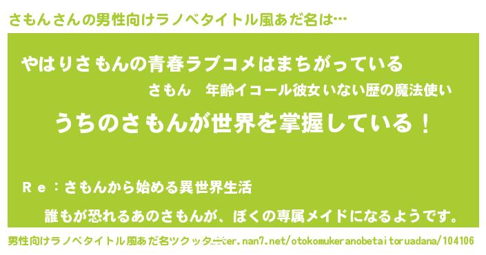 | 女子向けラノベタイトル風あだ名 | 『男装さもんの憂鬱な任務』『闇のさもん』 |