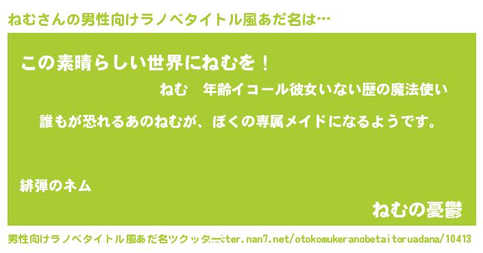 | ファンタジー風あだ名 | 『ネムディッシュ』『ヴァルネムーナ』 |