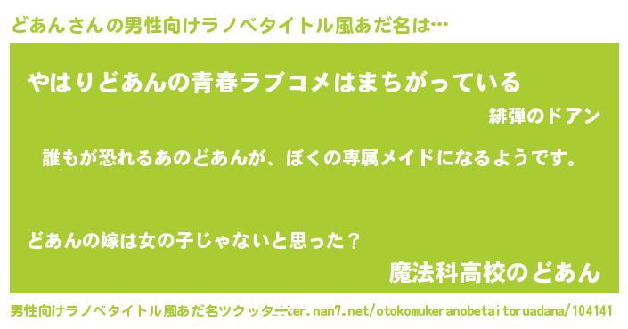 | 女子向けラノベタイトル風あだ名 | 『異世界でカフェどあんを開店しました。』 |