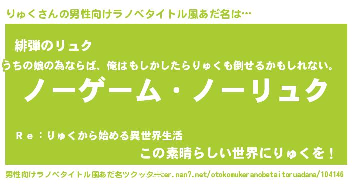 | ヒーロー風カッコイイあだ名 | 『慈愛の使者りゅく』『仮面リュダー』 |