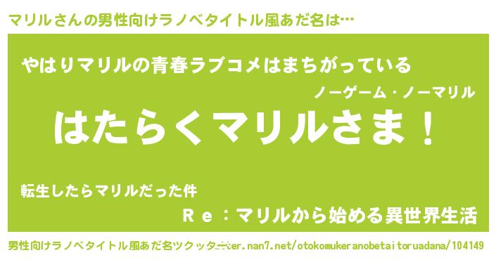 | ポケモン風あだ名 | 『マリゴンZ』『マリルダネ』 |