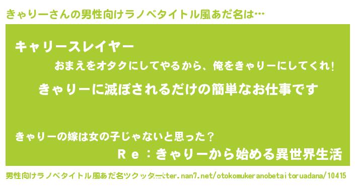 | 意味不明あだ名 | 『なめこ科きゃりー属』『自称きゃりー』 |