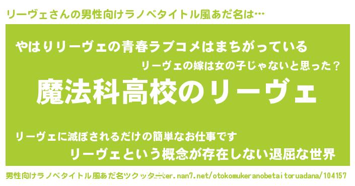 | 女子向けラノベタイトル風あだ名 | 『リーヴェなんてお断りですっ。』 |