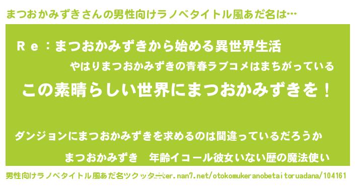 | 意味不明あだ名 | 『住所不定無職まつおかみずき(86歳)』 |