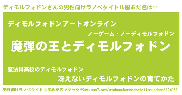 | 女子向けラノベタイトル風あだ名 | 『乙女ゲームの破滅フラグしかない悪役ディモルフォドンに転生してしまった…』 |