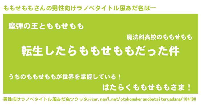 | ヘコむあだ名 | 『なまこ酢』『ももせもも(笑)』 |