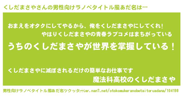 | 女子向けラノベタイトル風あだ名 | 『男装くしだまさやの憂鬱な任務』 |