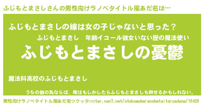 | 女子向けラノベタイトル風あだ名 | 『(仮)ふじもとまさしのやんごとなき事情』 |