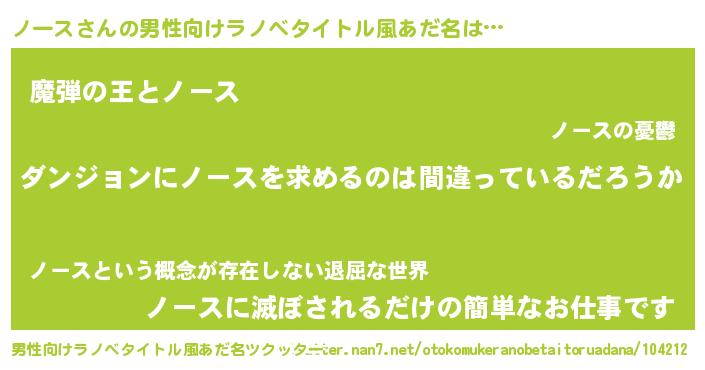 | ヒーロー風カッコイイあだ名 | 『銀牙騎士ノー』『仮面ノーダー』 |
