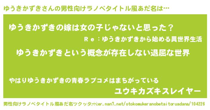 | 女子向けラノベタイトル風あだ名 | 『ゆうきかずきの契約王妃』 |