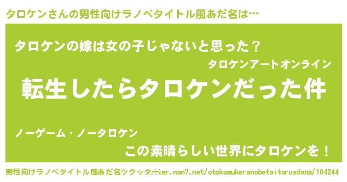 | 胡散臭い通販商品みたいなあだ名 | 『伝統あるネックレス…その名も「タロケン」』 |
