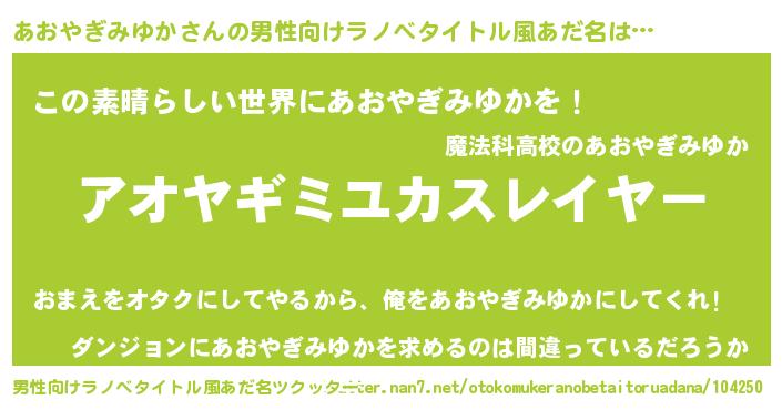 | ヘコむあだ名 | 『あおっぺ』『あおやぎみゆか(遠い目)』 |