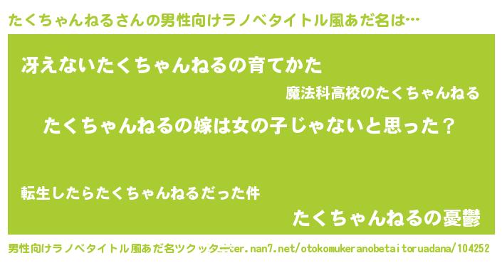 | 女子向けラノベタイトル風あだ名 | 『たくちゃんねる様がみてる』 |