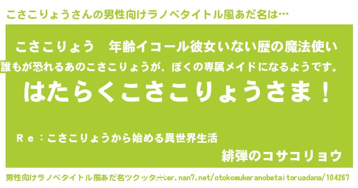 | 胡散臭い通販商品みたいなあだ名 | 『絶対に幸福をもたらす招き猫…その名も「こさこりょう」』 |