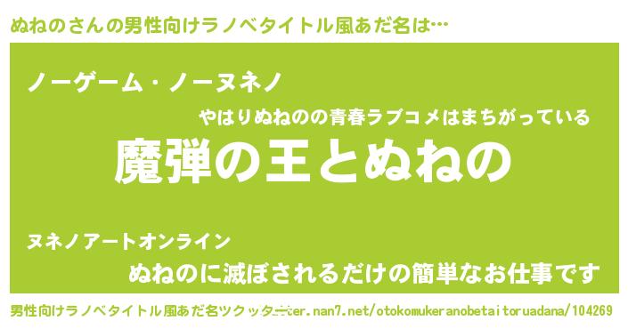 | ヒーロー風カッコイイあだ名 | 『仮面ヌネダー』『慈愛の使者ぬねの』 |