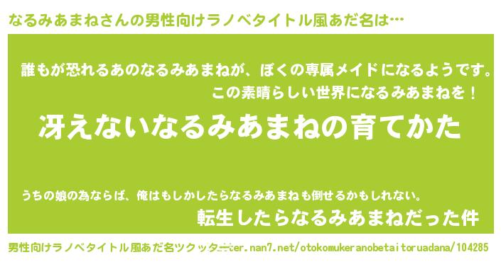| ヘコむあだ名 | 『なるみあまね(爆)』『なまこ酢』 |
