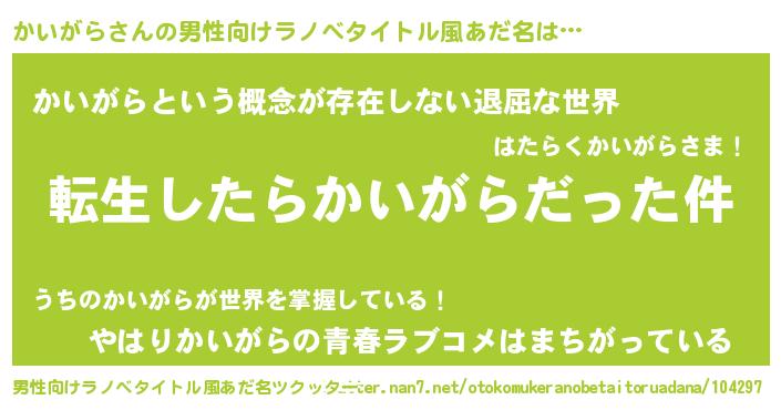 かいがらさんの男性向けラノベタイトル風あだ名をツクッター!
