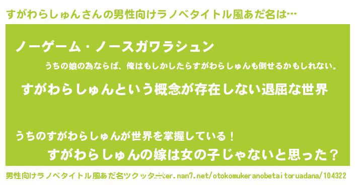 | 女子向けラノベタイトル風あだ名 | 『すがわらしゅんの契約王妃』 |