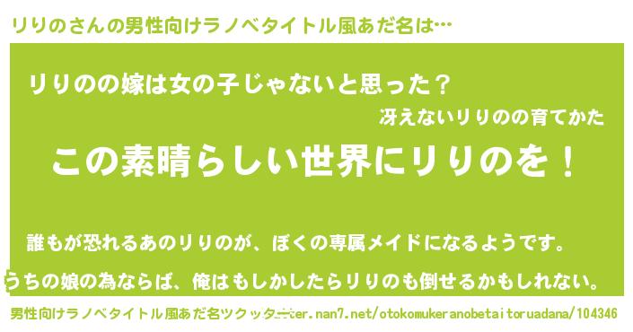 | 胡散臭い通販商品みたいなあだ名 | 『あなたにだけ特別に提供する世界で10本だけ現存している希少なブランデー…その名も「リりの」』 |