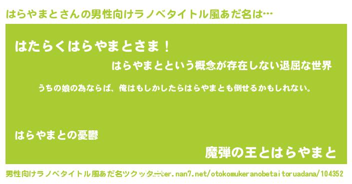| 女子向けラノベタイトル風あだ名 | 『はらやまと伯爵の花嫁』 |