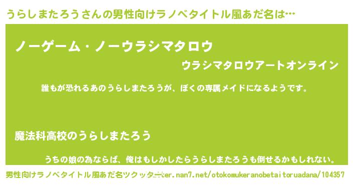 | 意味不明あだ名 | 『永久保存うらしまたろう』 |