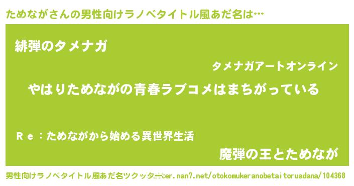 | 女子向けラノベタイトル風あだ名 | 『ためなが伯爵の花嫁』『闇のためなが』 |