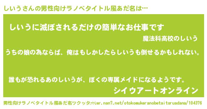 | ヒーロー風カッコイイあだ名 | 『ウルトラしいうマン』『スーパーシイウ』 |