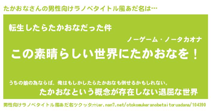| 女子向けラノベタイトル風あだ名 | 『悪役たかおなに転生したようですが、知った事ではありません』 |