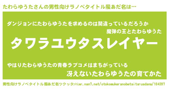 | 胡散臭い通販商品みたいなあだ名 | 『信頼と実績のネックレス…その名も「たわらゆうた」』 |