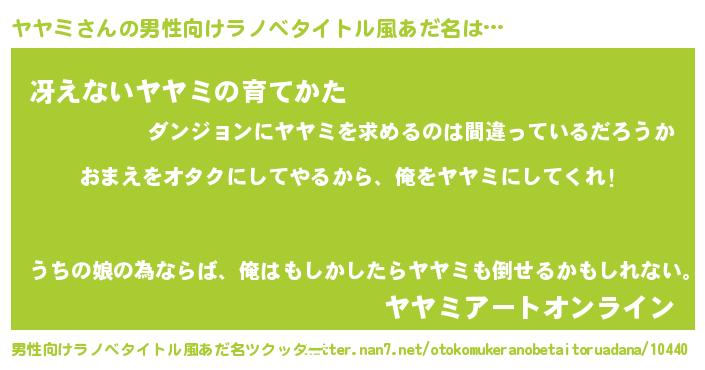 | 女子向けラノベタイトル風あだ名 | 『ヤヤミ恋絵巻』『ヤヤミは平凡を望む』 |
