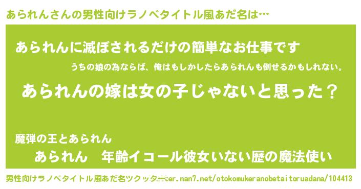 | 女子向けラノベタイトル風あだ名 | 『あられん様がみてる』 |