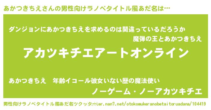 | 女子向けラノベタイトル風あだ名 | 『あかつきちえ姫と円卓の騎士』 |