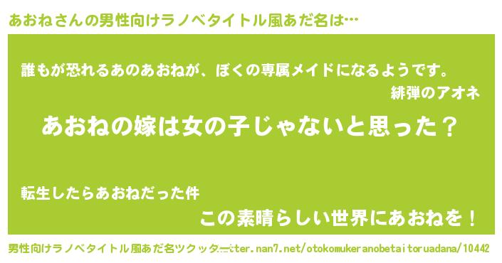 | ヘコむあだ名 | 『あおっちょ』『あおね(震え声)』 |