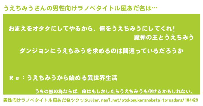 | 女子向けラノベタイトル風あだ名 | 『うえちみうは平凡を望む』 |