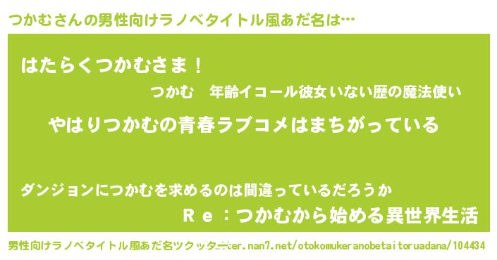 | 女子向けラノベタイトル風あだ名 | 『つかむの雑貨屋さん』『闇のつかむ』 |