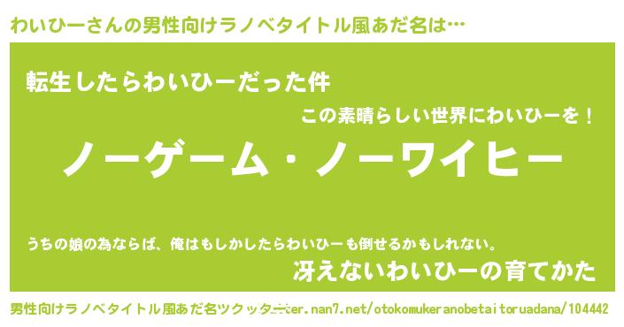 | 肩書あだ名 | 『わいひー助手』『わいひー少将』 |