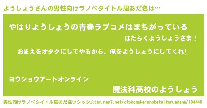 | 女子向けラノベタイトル風あだ名 | 『ようしょう夫妻のなれそめ』 |
