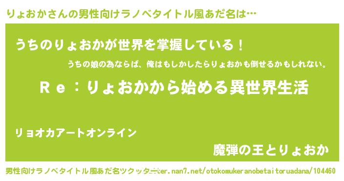 | 女子向けラノベタイトル風あだ名 | 『りょおかストレイドッグス』 |