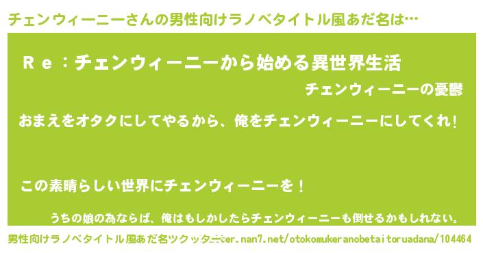 | 女子向けラノベタイトル風あだ名 | 『チェンウィーニー夫妻のなれそめ』 |