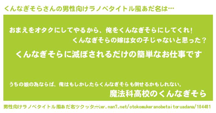 | 伝説のあだ名 | 『救世主となる技術者くんなぎそら』 |